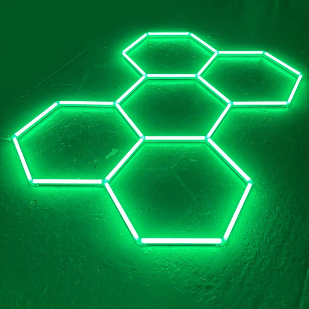 Lampe led de plafond 6 carrés alignés 4M x 0.7M 144W Vert Detailing Barber Garage
