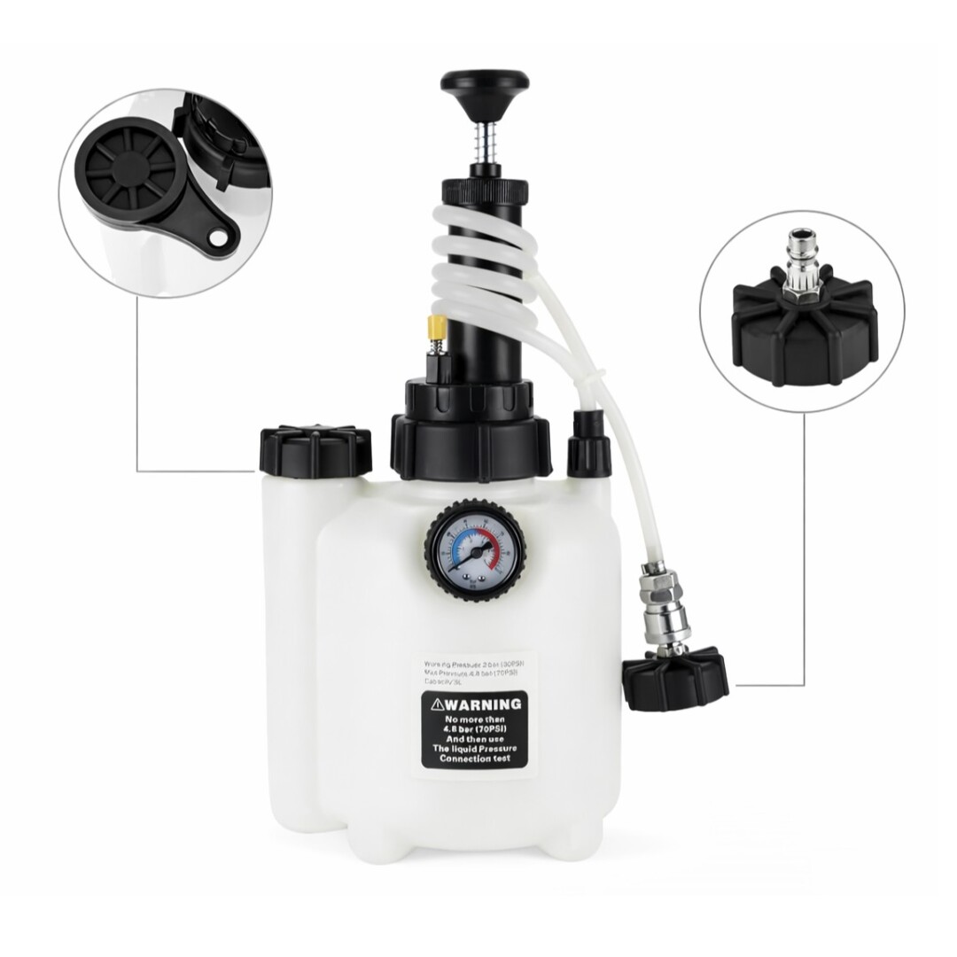 Outil de Purge de Frein Manuel 3L avec Pompe et Manomètre – Purgeur Circuit Frein Auto – Pot Récupération 1L – Jusqu’à 4 Bars – Kit Complet