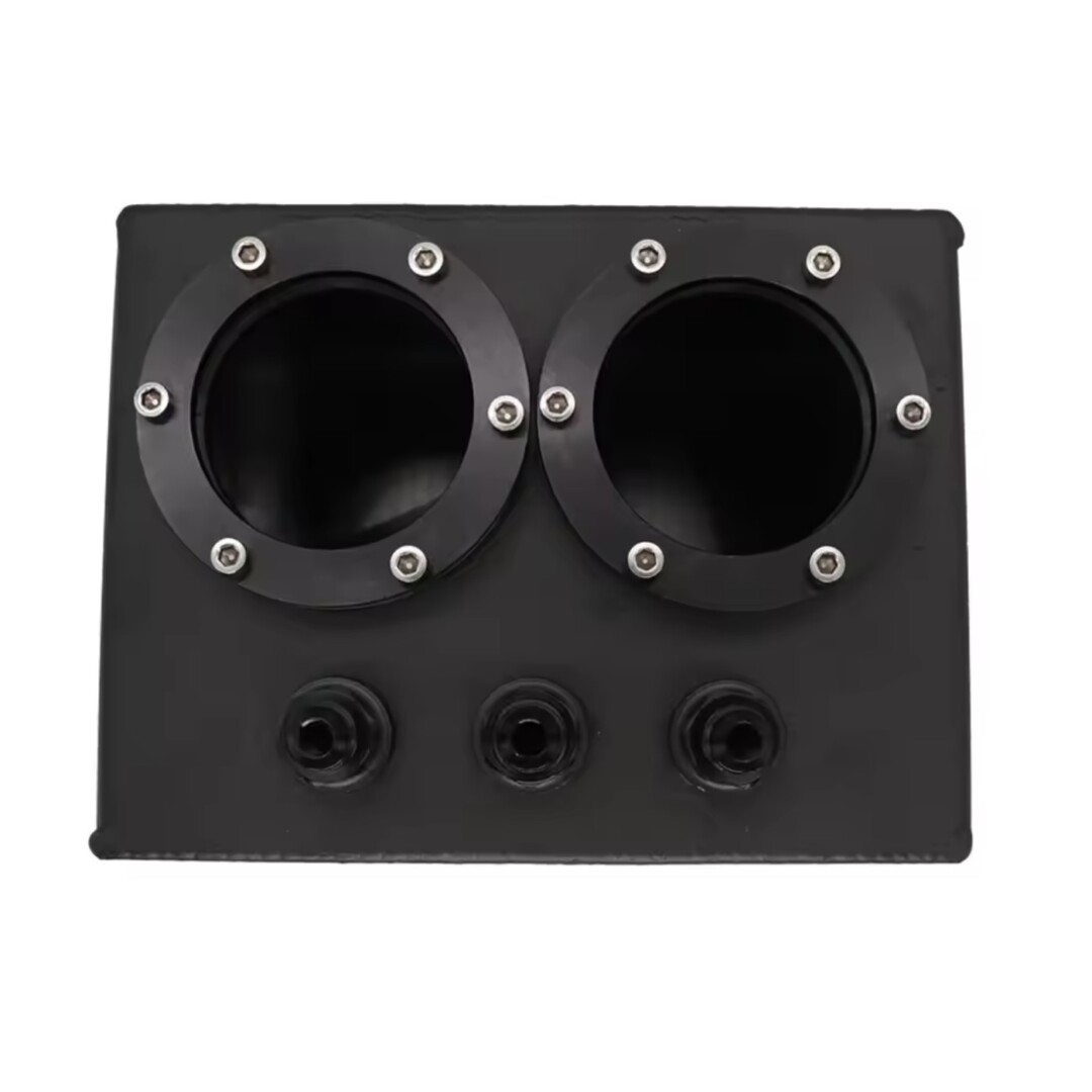Boite tampon en aluminium 3L double pompe à essence type 044, AEM 60mm, raccords Dash 6