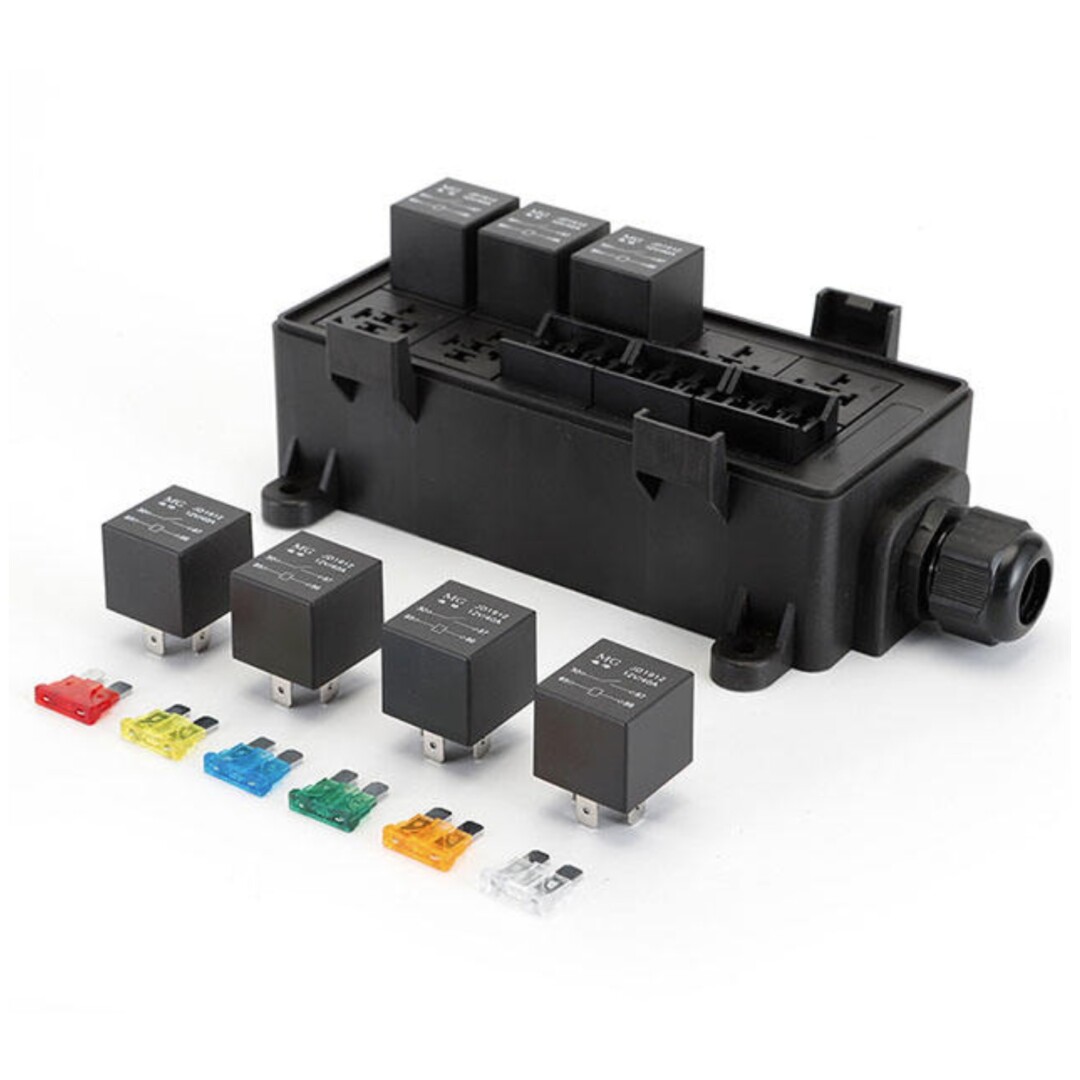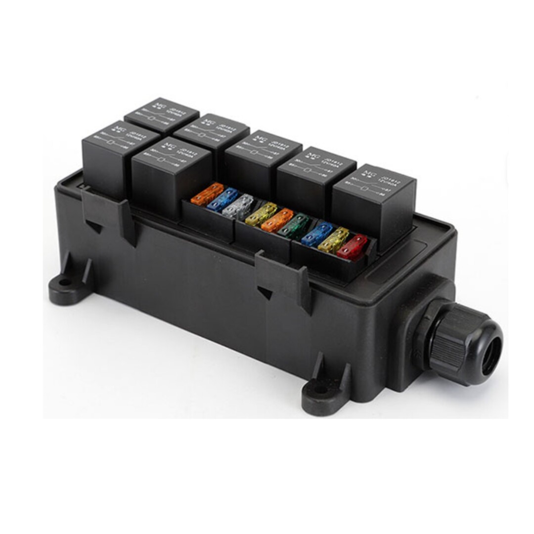 Wasserdichter Schaltkasten IP68 Marine 7 Relais 40A + 9 Sicherungen – Installationszentrale 12V bis 48V – ATO & High Power ANS – Industriequalität PA66