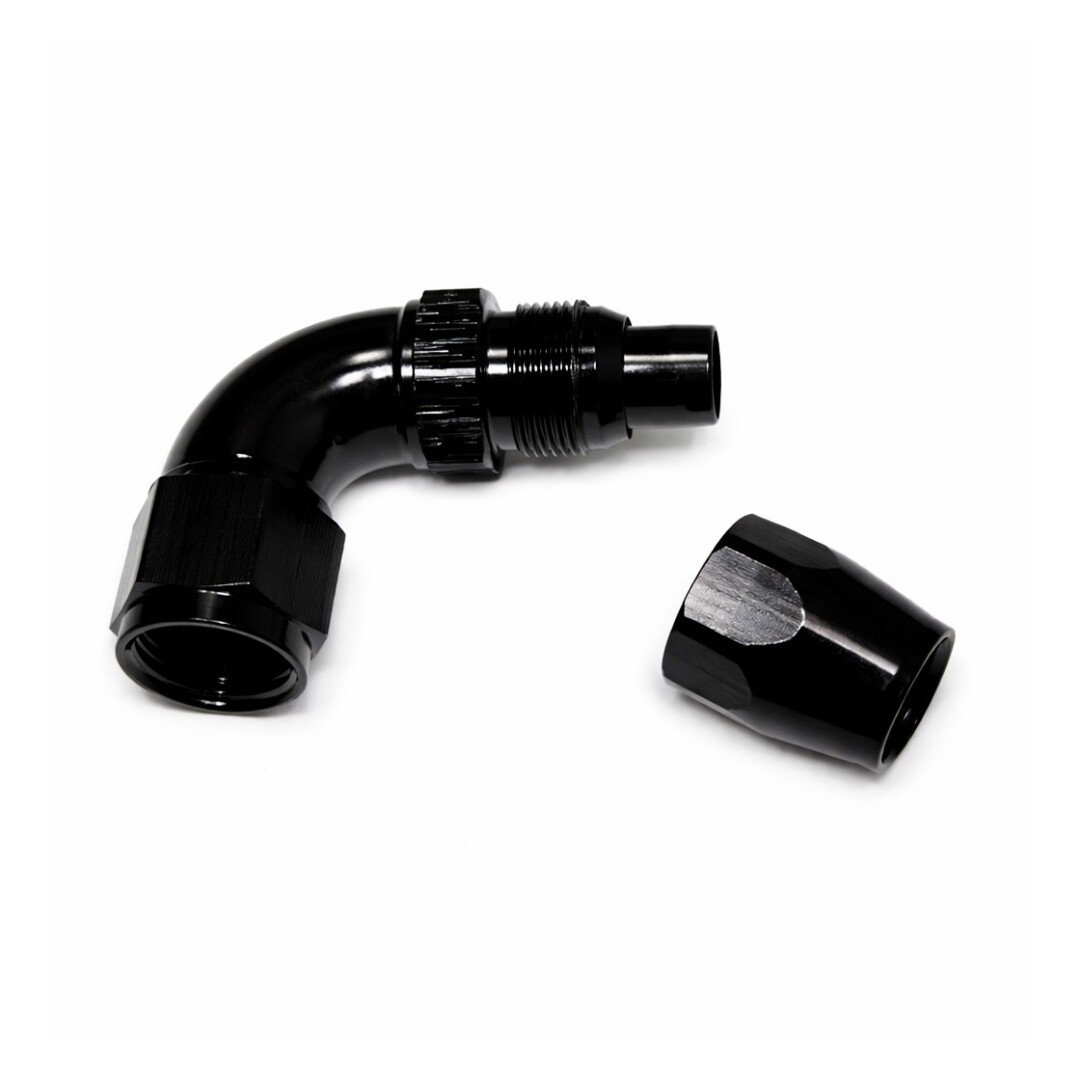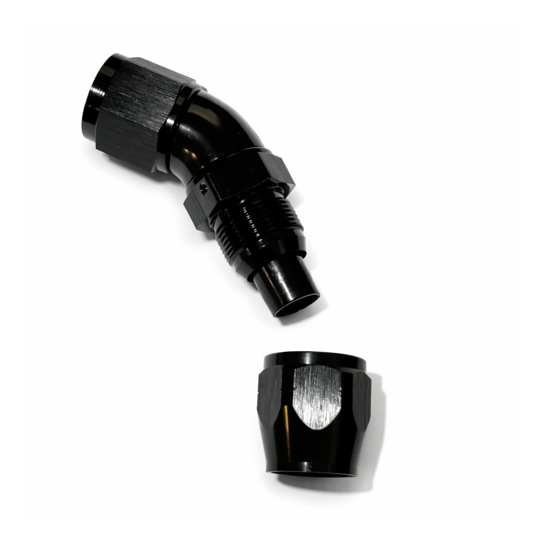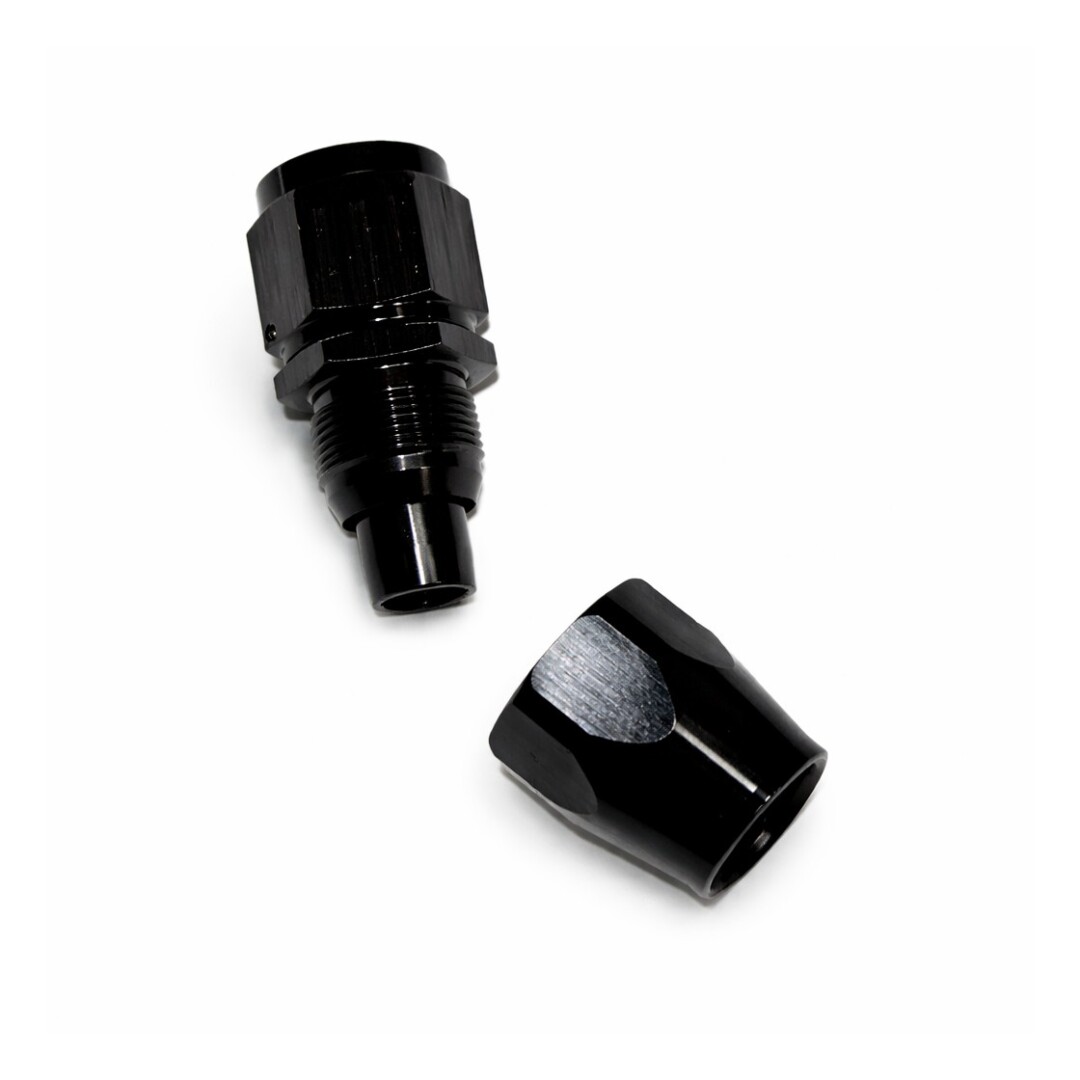 CNC gefräste AN10 Kupplung aus schwarz eloxiertem Aluminium.