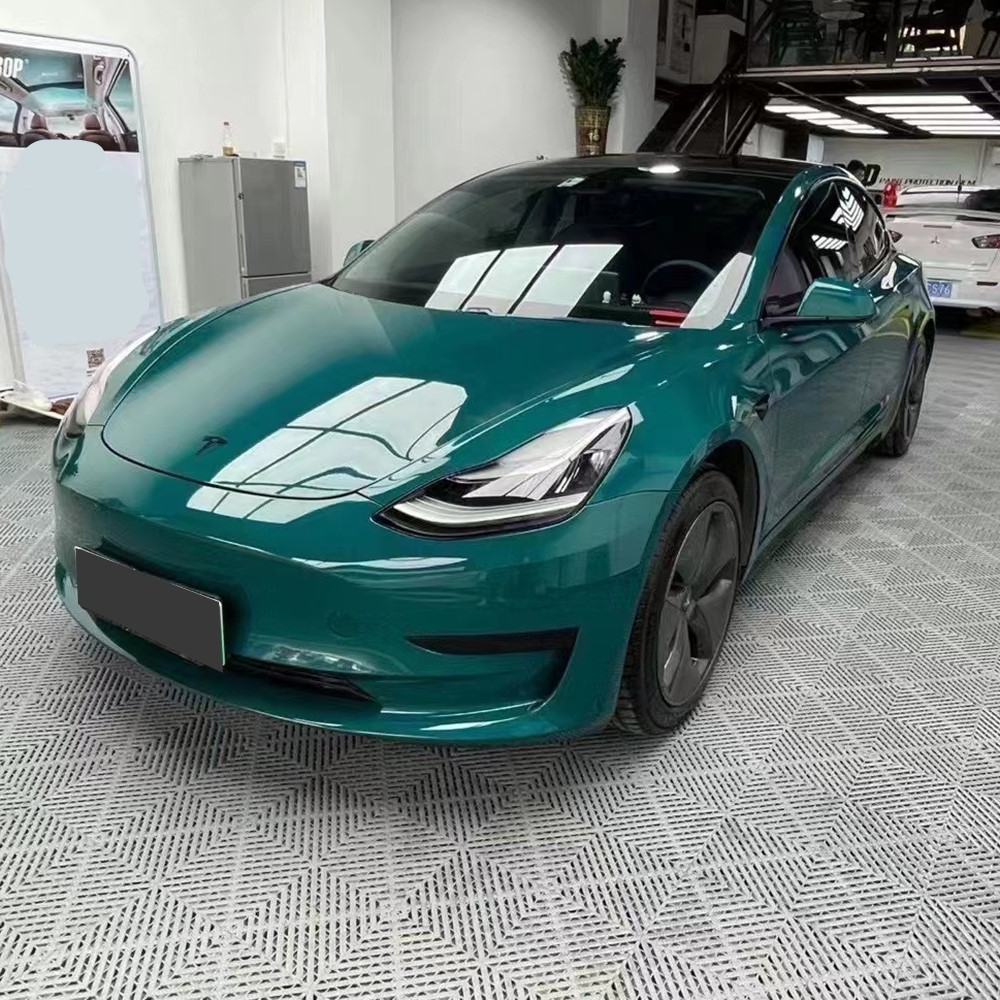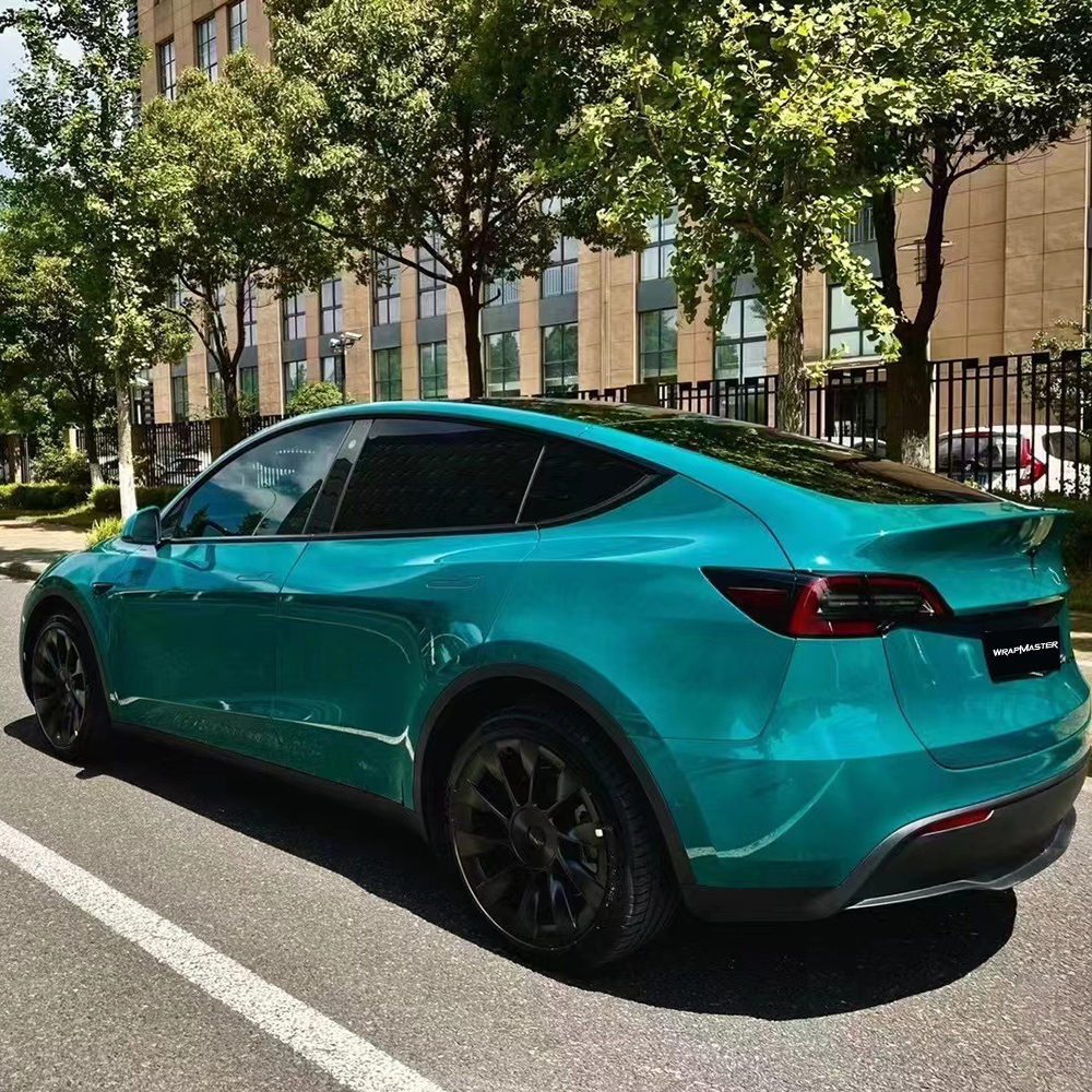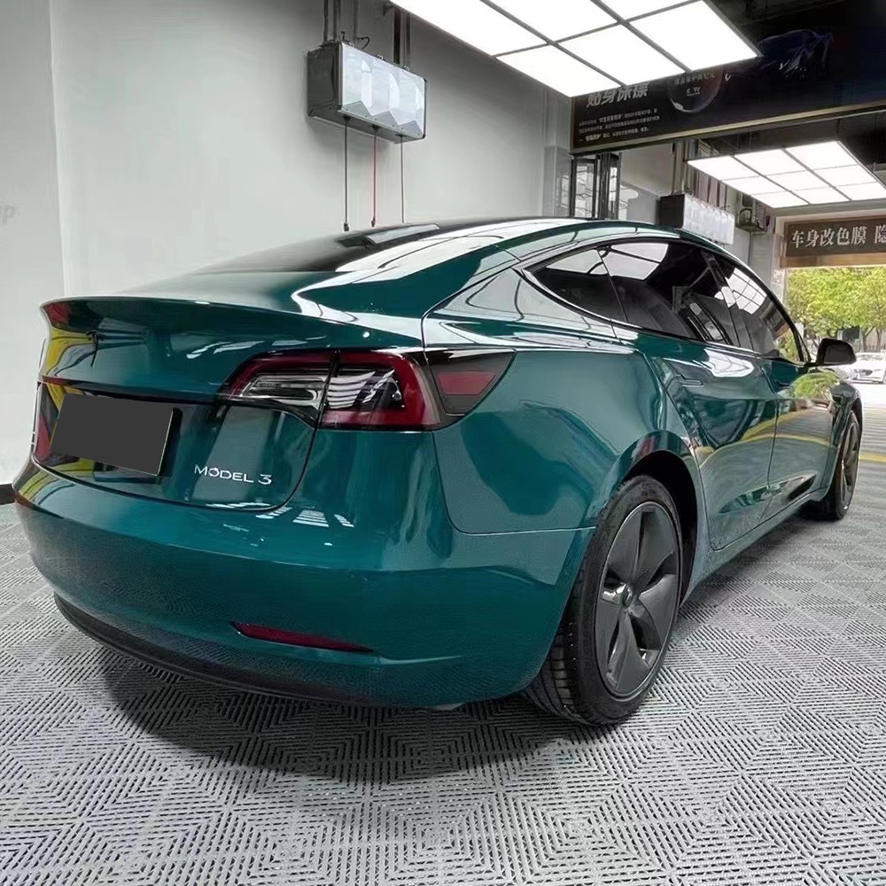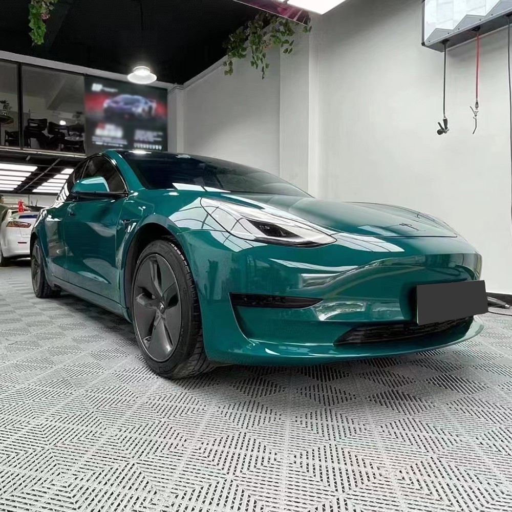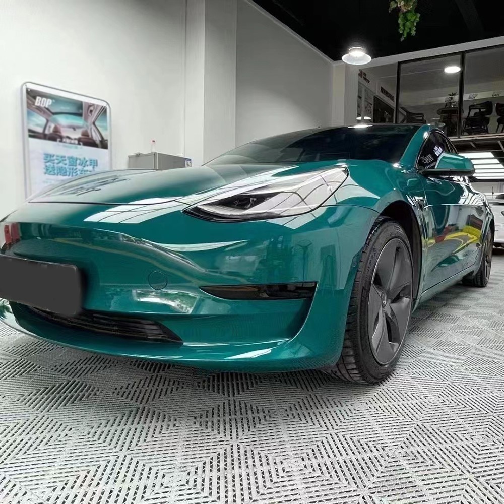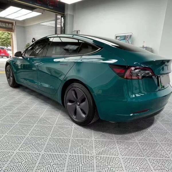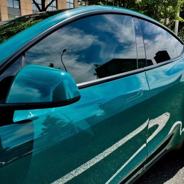 Hochglänzende grüne Folie, auch „Audi Hell“ genannt, mit schönen Reflexen, um Teile zu imitieren, die in der Karosserie mit den glänzendsten Lacken, den sogenannten „Thixotropen“, lackiert wurden.