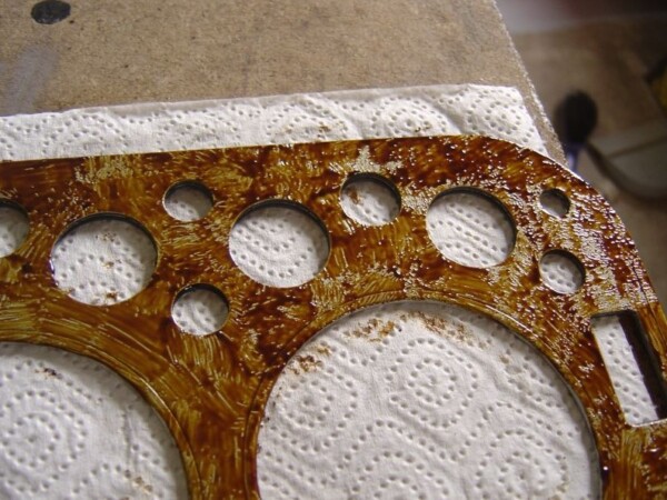 - Tragen Sie den Kleber auf beide Seiten der Zylinderkopfdichtung auf.