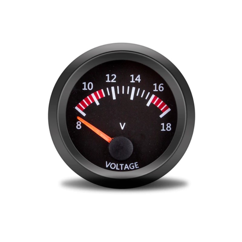 Die Skala reicht von 8 bis 18 Volt und deckt den Spannungsbereich der meisten Fahrzeugmotoren ab.