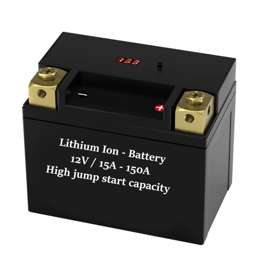 Lithium-ion motorcycle battery – dry – lightweight 1kg – 12 Volts 15 Amps – for SSVs, Quads, Road, Enduro, and Trail motorcycles