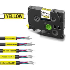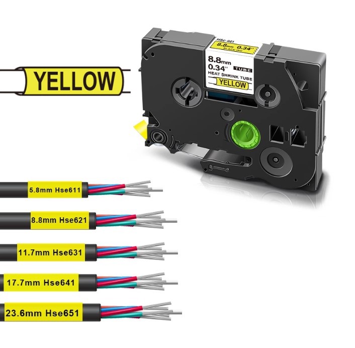 Shrink tubing for Brother P-touch labeller (6,9,12,18,24mm black on yellow)