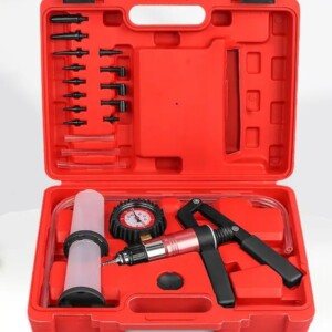 Brake bleeder with manual vacuum pump + reservoir and accessories