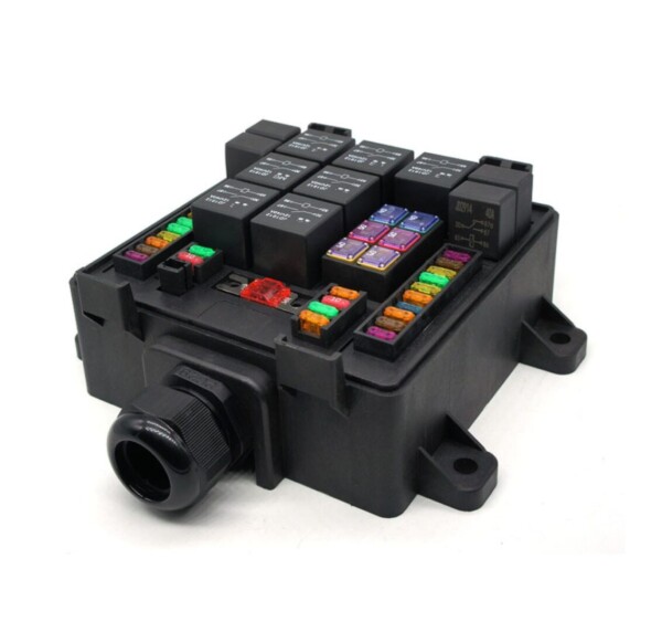 With this relay and fuse box, put an end to confusing and messy electrical circuits.Centralise all your relay fuses in a single box.Wires pass through the cable gland, clip-on lid on top .