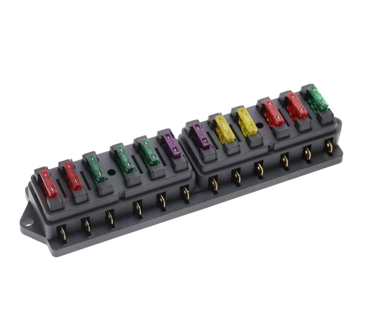 With this relay and fuse box, put an end to confusing and messy electrical circuits.Centralise all your relay fuses in a single box.Wires pass through the bottom, clip-on lid on top .