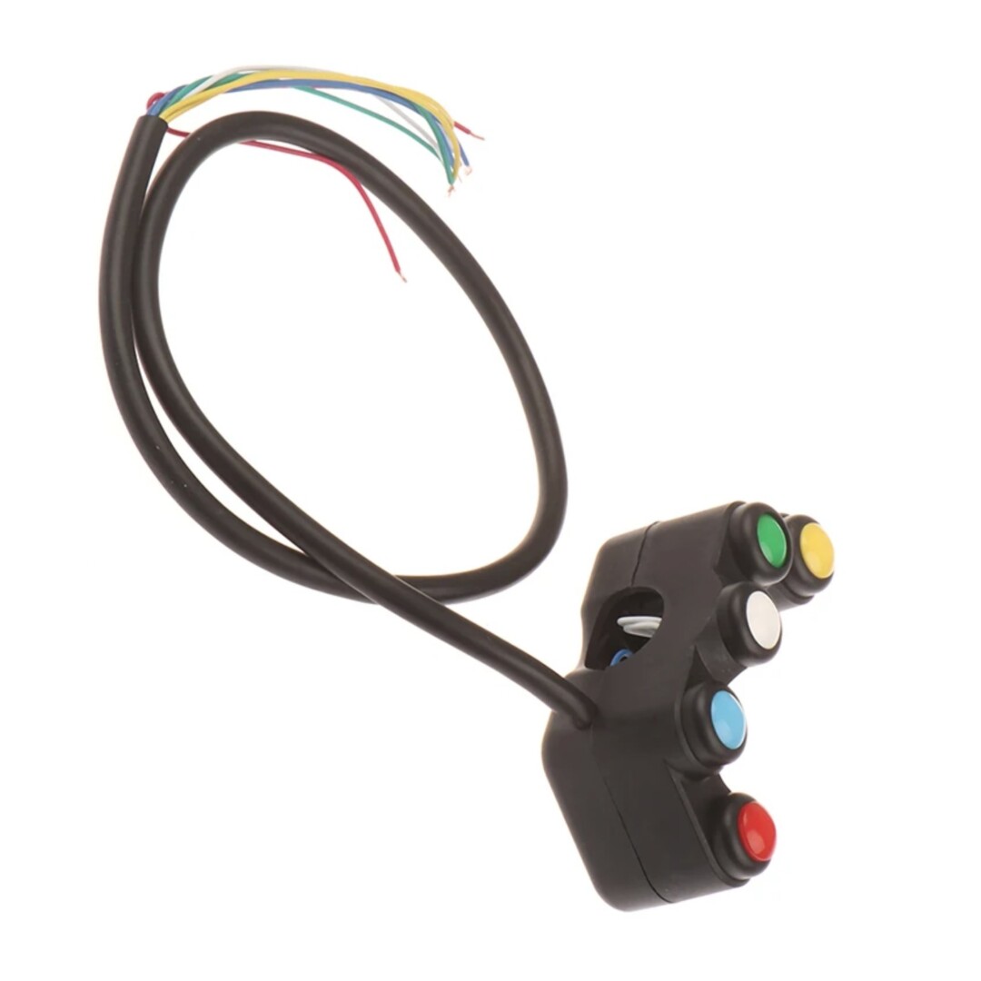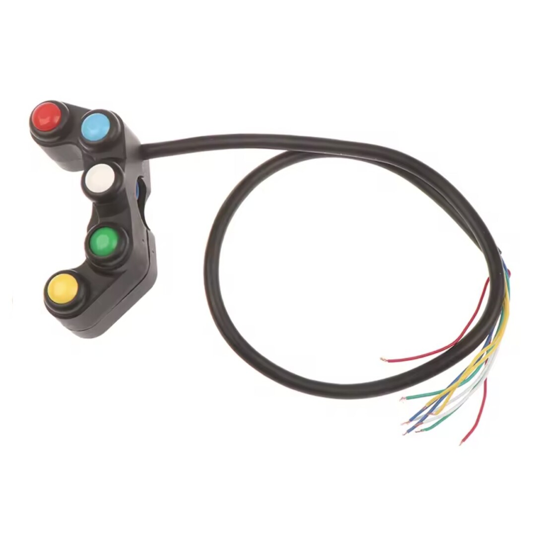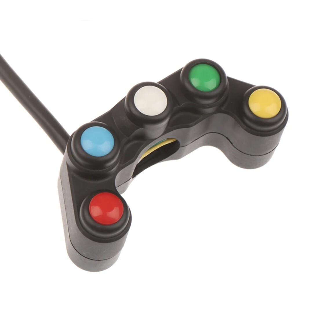 22 mm universal handlebar unit with 5 round multifunction buttons, ideal for additional electrical controls on motorbikes.