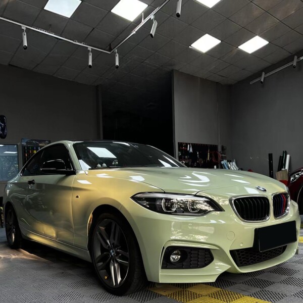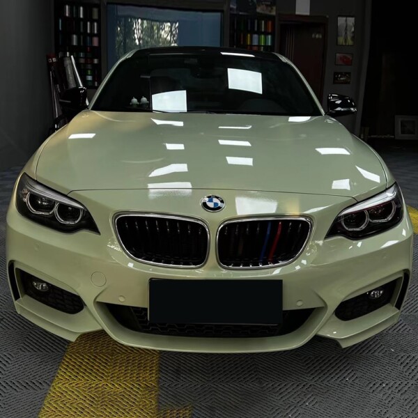High-gloss Green Vinyl film also known as “Khaki” with beautiful reflections to imitate parts painted then varnished in bodywork with the most brilliant varnishes known as “Thixotropic”.