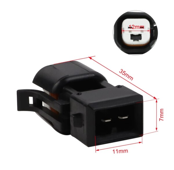 High flow injectors such as ID Injectors dynamics, Deatschwerks, ASNU, Bosch etc. are often designed with an EV6 or EV14 type connector. However, this type of connector is rarely used on original wiring harnesses.