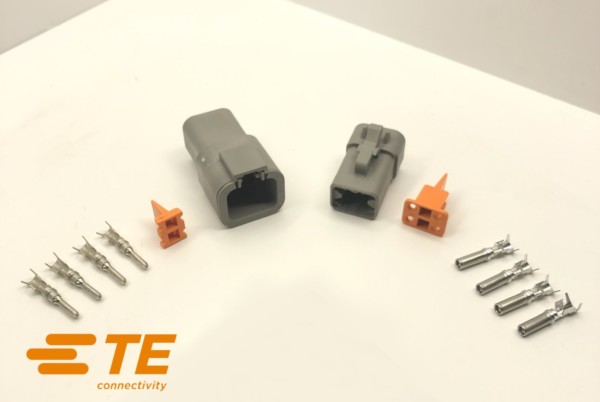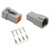 Deutsch DT electrical connectors are used for machines subject to extreme conditions such as: agricultural machinery, heavy goods vehicles, and competition vehicles.Completely waterproof and capable of passing more than 15 amperes per connection pin, these connectors are a standard in the manufacture or repair of an electrical harness.Sold in male and female sets, complete with crimp pins, internal and external seals, and pin locks.