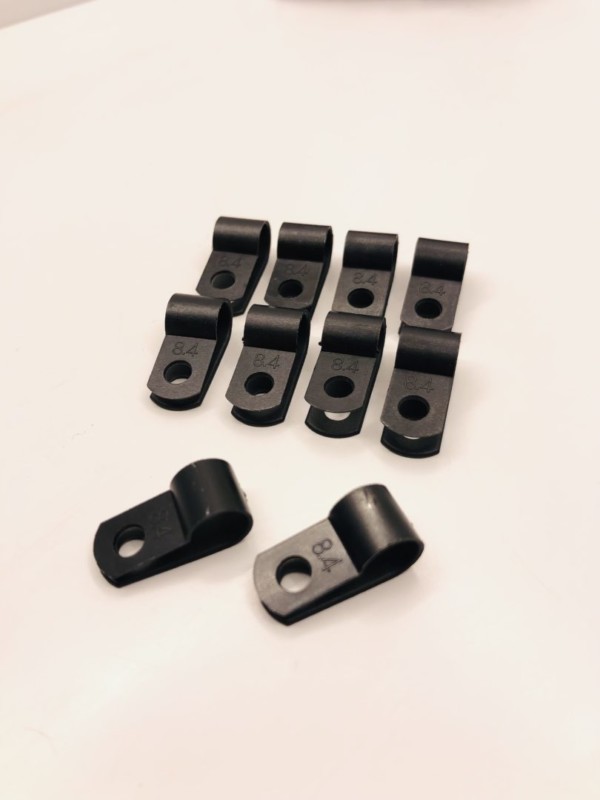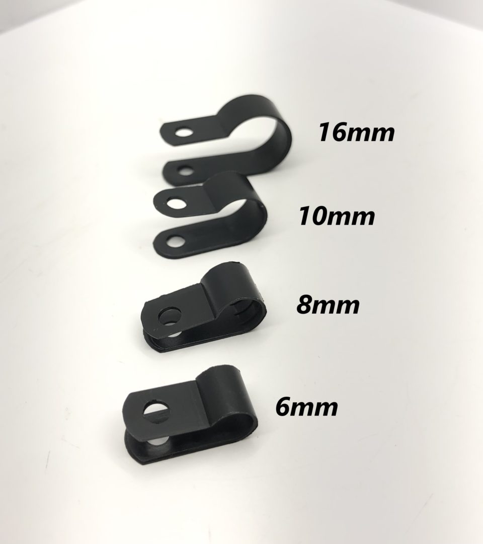 P-shaped nylon cable ties, widely used in the automotive, agricultural and industrial sectors.