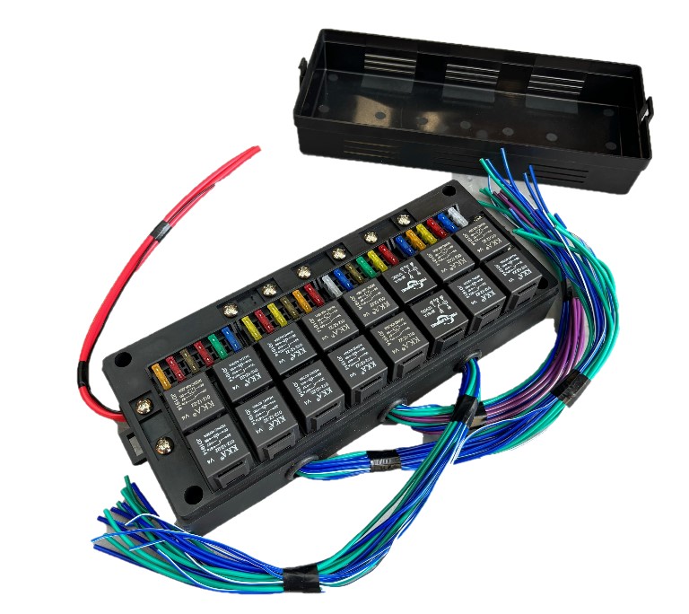 With this relay and fuse box, put an end to confusing and messy electrical circuits.Centralise all your relay fuses in a single box.Wires pass through the bottom, clip-on lid on top .