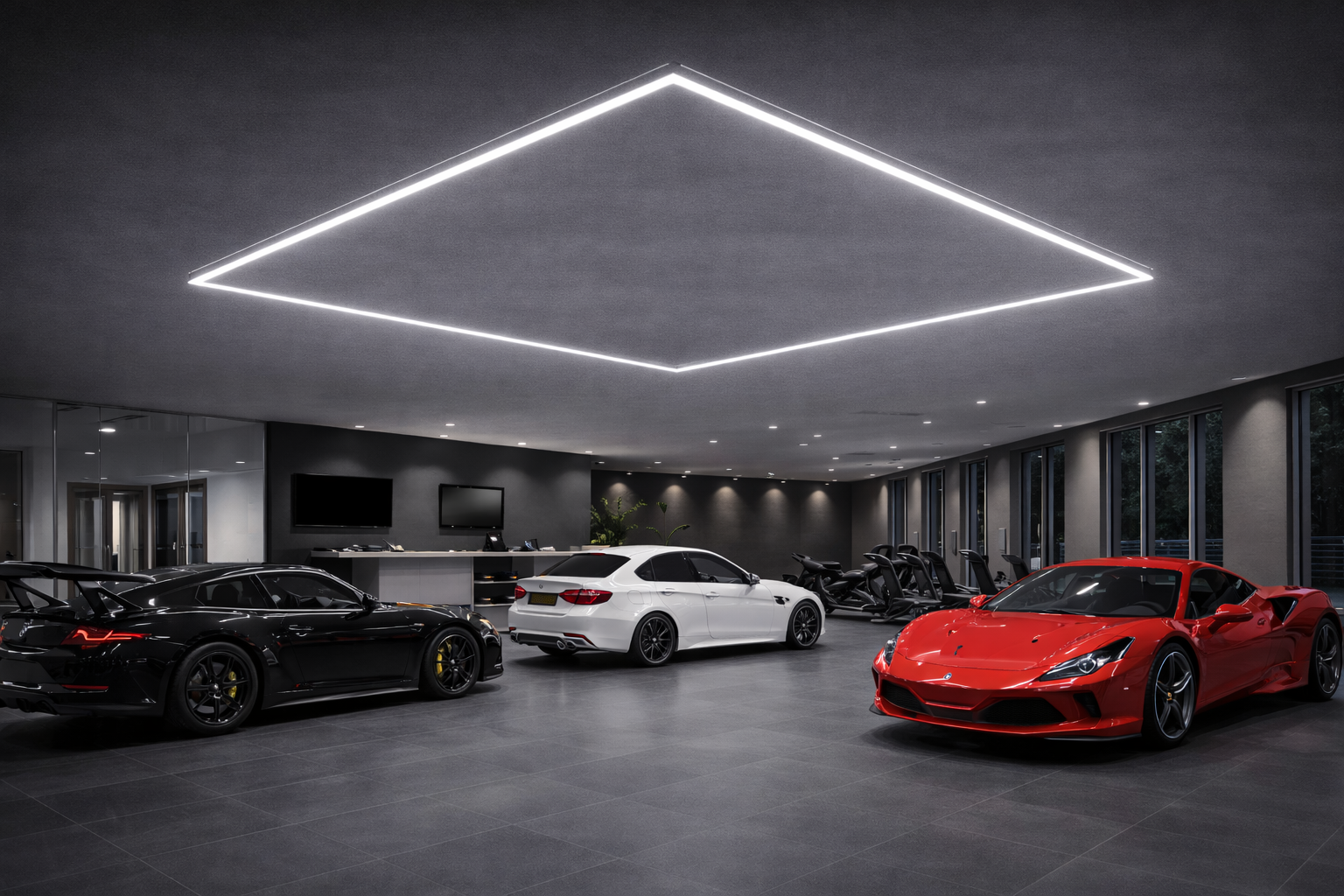 It offers exceptional brightness (~ 15,360 lumens) with low power consumption, and cool white lighting (6500 K) ideal for technical environments, garages, workshops and work areas.