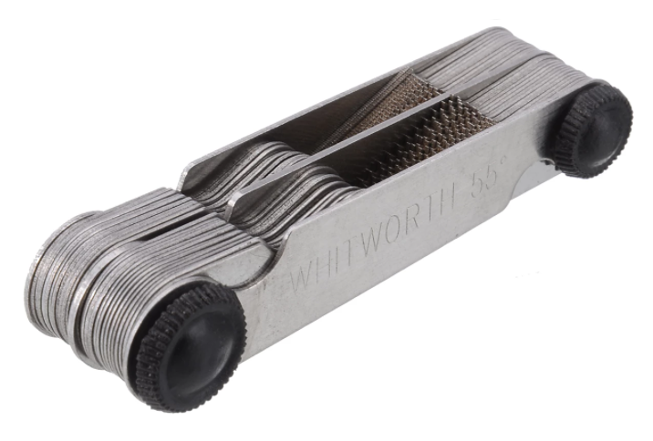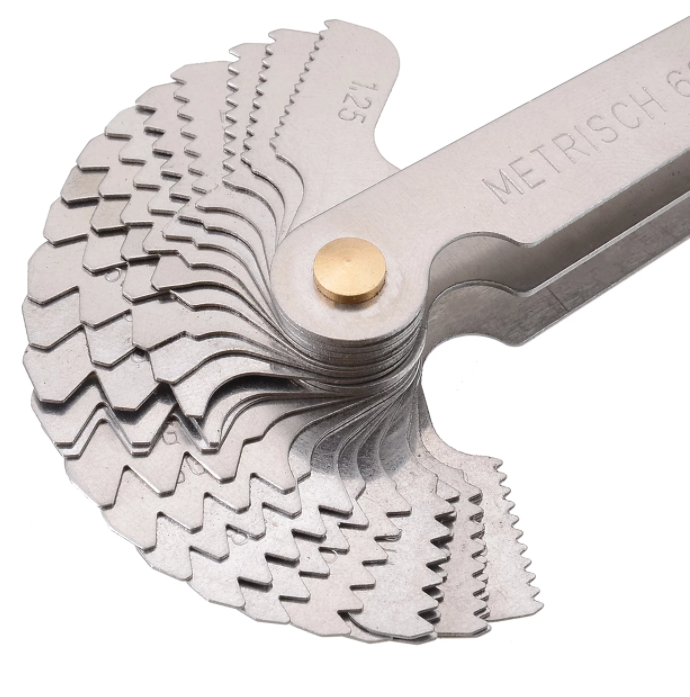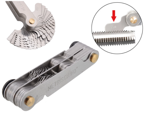 Use this measuring comb, also known as a thread gauge, to measure both metric and imperial threads (English and American threads).
