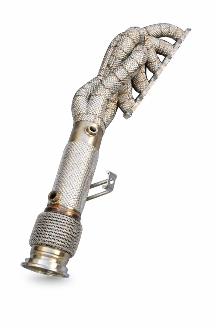 This system retains a maximum amount of heat inside the exhaust, improving engine efficiency (hotter manifold = higher gas velocity), while effectively protecting the engine compartment, floor and surrounding sensitive components.