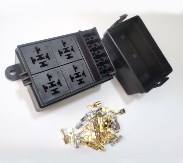 Caja con 4 relés de 40 amperios + 6 fusibles estándar