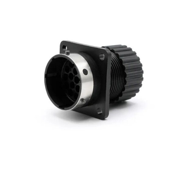 Conector pasamuros redondo con cierre de un cuarto de vuelta