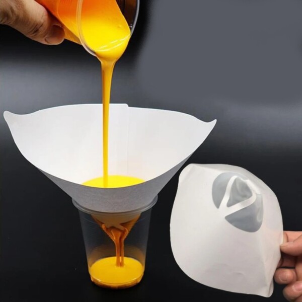 Coloque su filtro encima del vaso de su pistola pulverizadora y deje que la gravedad haga pasar su pintura a través de la malla. Esto filtrará su pintura.