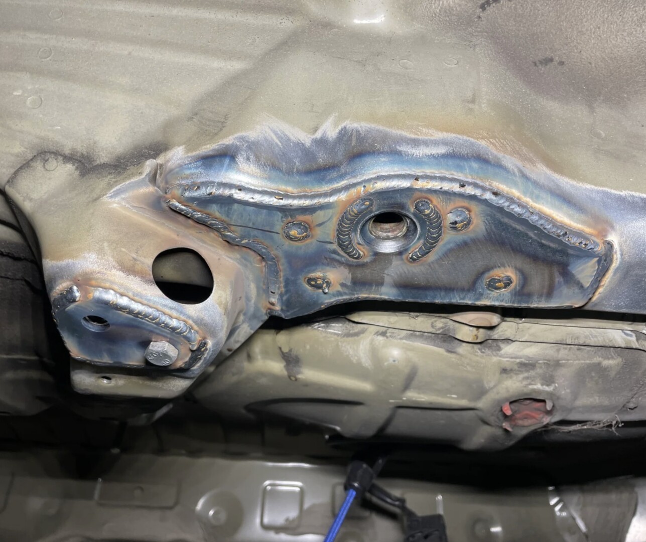 Pero es posible reparar y reforzar este punto débil soldando estas placas de refuerzo alrededor de los anclajes de la cuna trasera.
