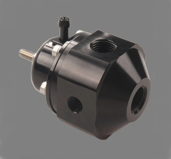 - Cuerpo de aluminio mecanizado por CNC, anodizado en negro