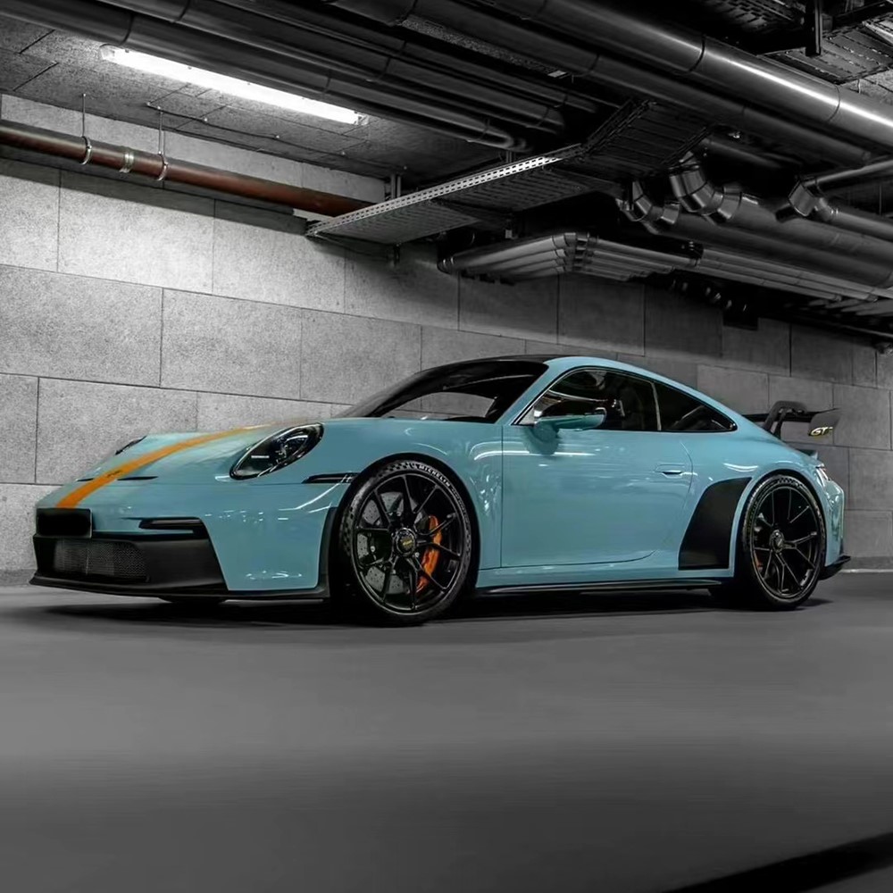 Vinilo de alto brillo Azul también conocido como «Azul Porsche de Meissen» con bellos reflejos para imitar piezas pintadas y barnizadas en carrocería con los barnices más brillantes conocidos como «Tixotrópicos».