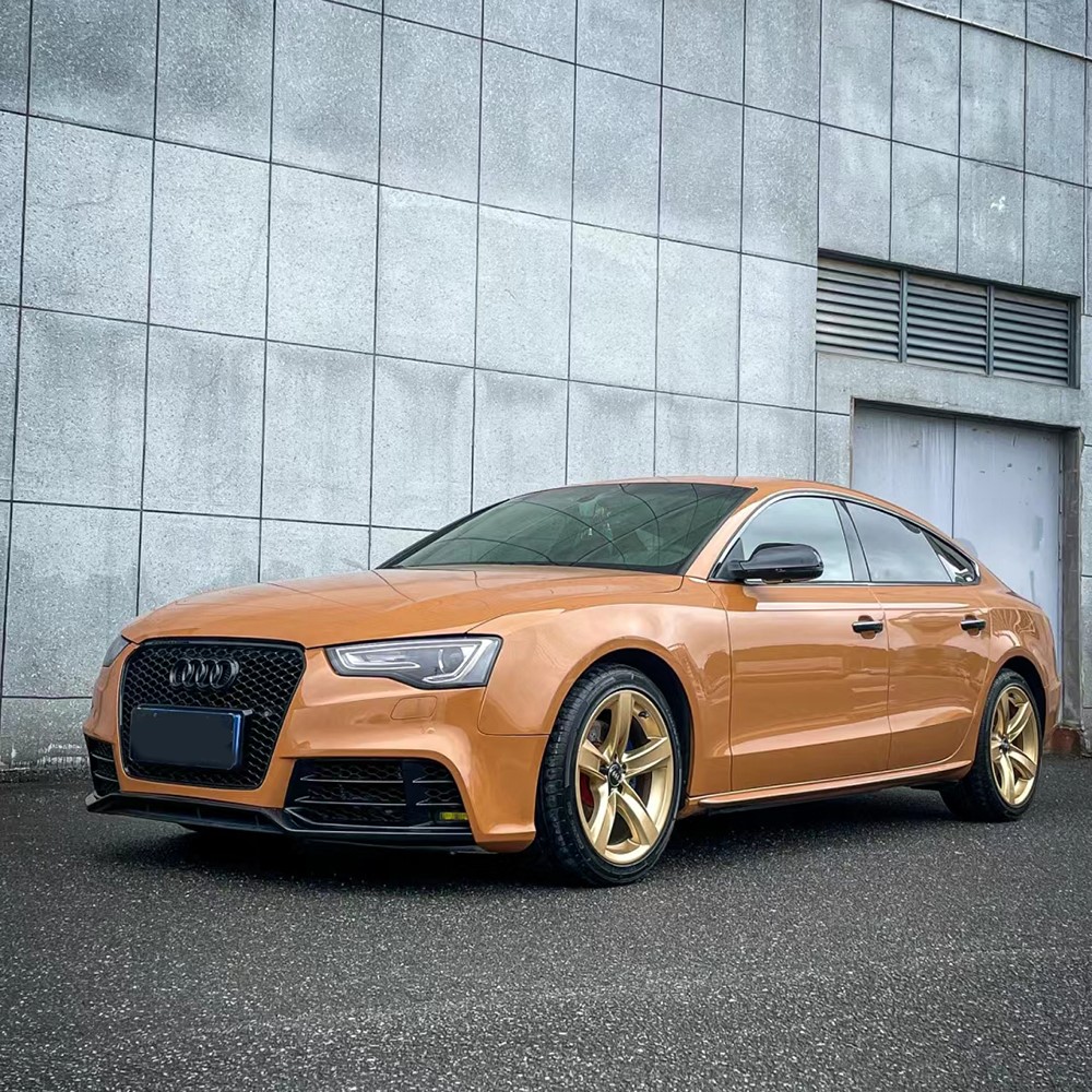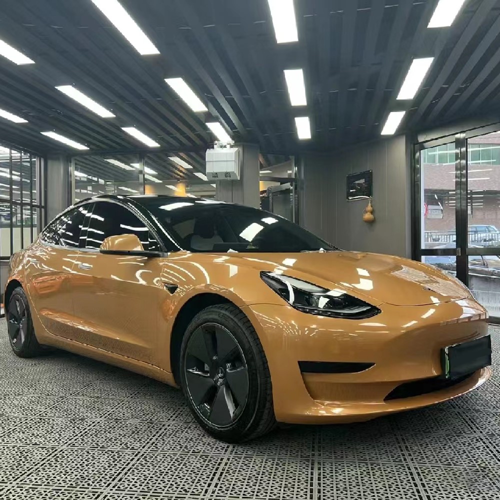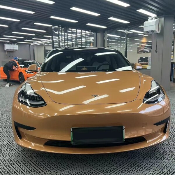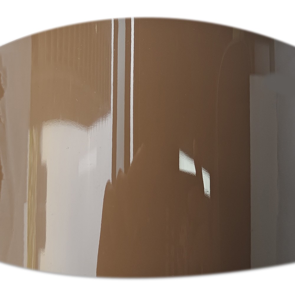 Vinilo marrón de alto brillo también conocido como «Caramelo» con bellos reflejos para imitar partes pintadas y luego barnizadas en carrocería con los barnices más brillantes conocidos como «Tixotrópicos».