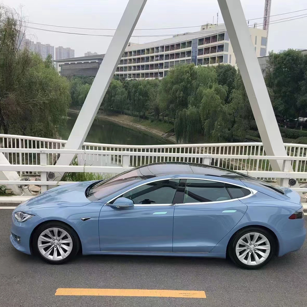 Vinilo azul de alto brillo también conocido como «Brume» con bellos reflejos para imitar piezas pintadas y barnizadas en carrocería con los barnices más brillantes conocidos como «Thixotropic».