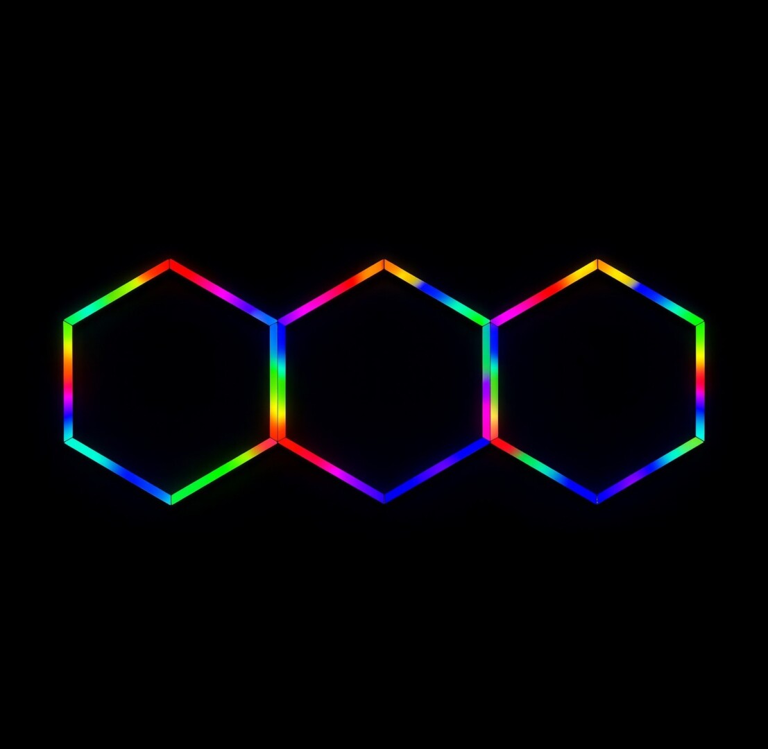 Lampada LED esagonale da soffitto a nido d’ape Garage multi colore RGB 230V 2,5m x 1m 130W 6500k detailing