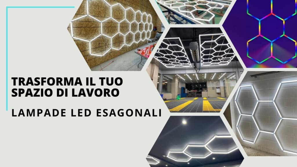 LUCE LED ESAGONALE 4 NIDO D’APE + 1 PLAFONIERA RETTANGOLARE GARAGE 230V 3.6M X 1.2M 230W 6500K DETAILING