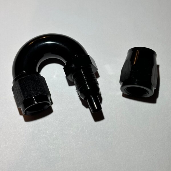 Raccordo Dash 4 lavorato a CNC in alluminio anodizzato nero.