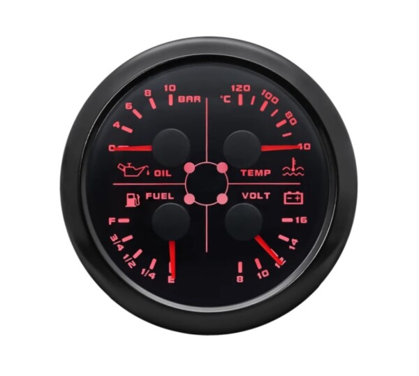 Temperatura dell’acqua + Pressione dell’olio + Voltmetro + Livello carburante