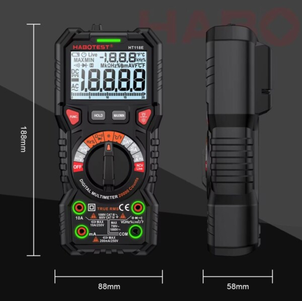 Multimetro professionale per tutti i tipi di misurazioni elettriche.