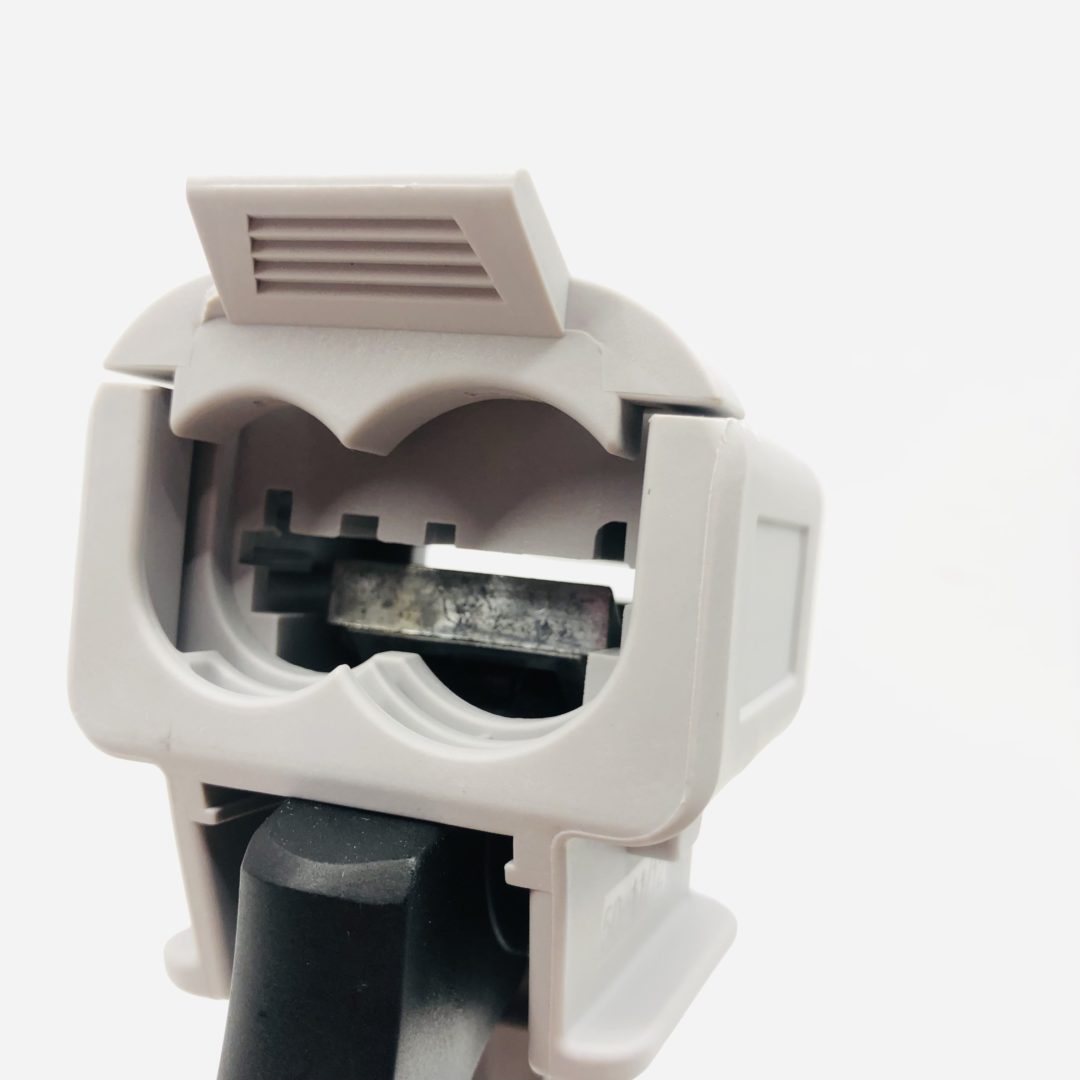 Ogni volta che si preme il grilletto, lo stantuffo rimane spinto nel tubo, permettendo alla colla di uscire e di essere mescolata nell’ugello.