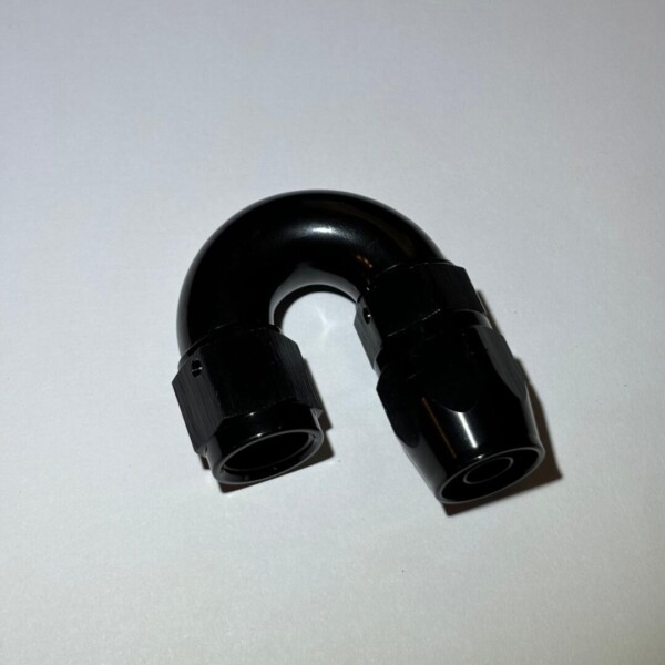 Raccordo Dash 6 lavorato a CNC in alluminio anodizzato nero.