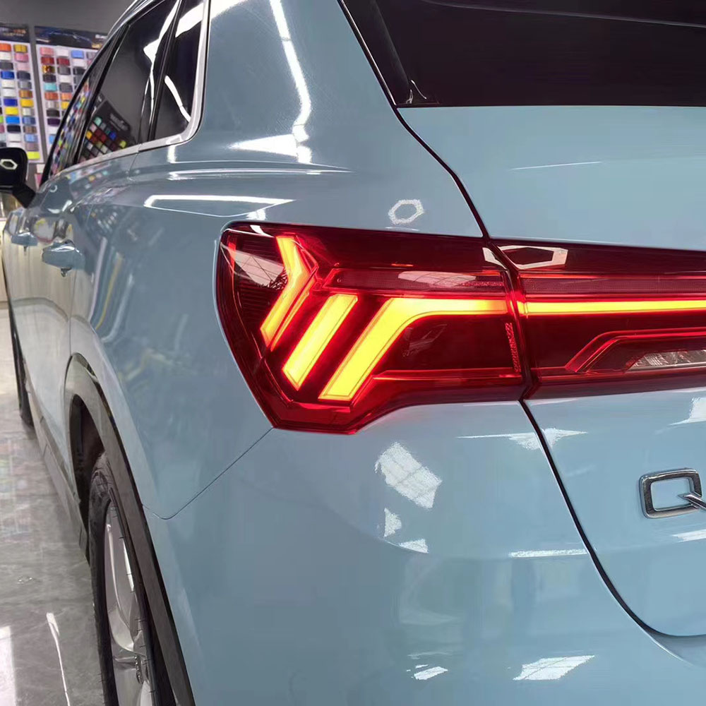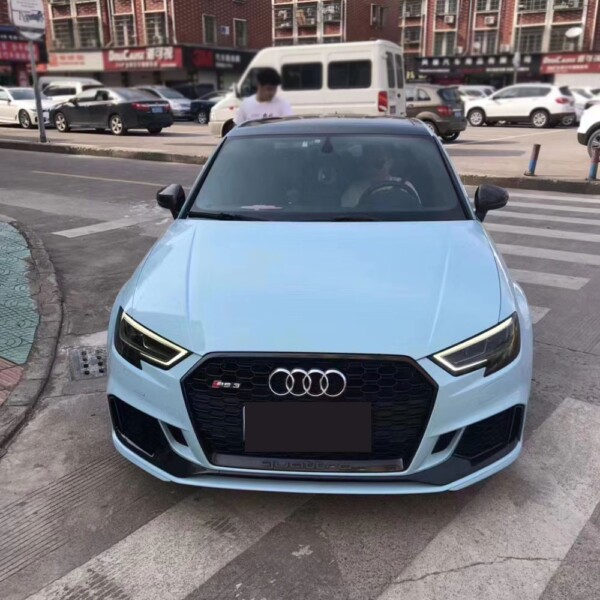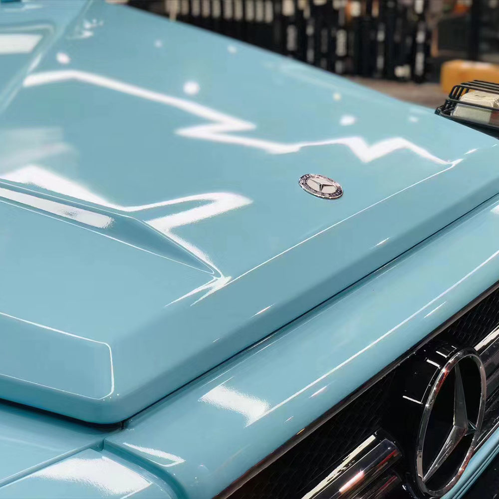 Pellicola vinilica blu ad alta lucentezza, nota anche come “Light”, con bellissimi riflessi per imitare il riflesso delle parti verniciate e poi verniciate in carrozzeria con le vernici più brillanti note come “Tixotropiche”.