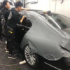 Pellicola vinilica grigia ad alta lucentezza, nota anche come “Cemento chiaro”, con bellissimi riflessi per imitare la lucentezza delle parti verniciate e verniciate in carrozzeria con le vernici più brillanti note come “Tixotropiche”.