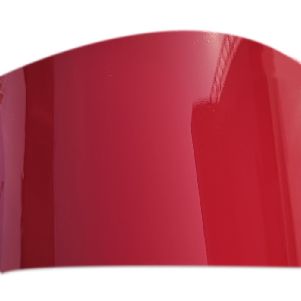 Pellicola rosso fragola ad alta lucentezza con bellissimi riflessi per imitare le parti verniciate e laccate in carrozzeria con le vernici più brillanti conosciute come “tixotropiche”.