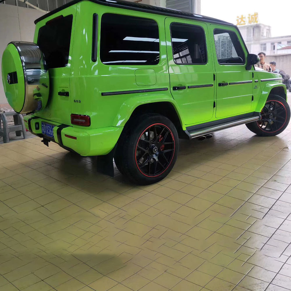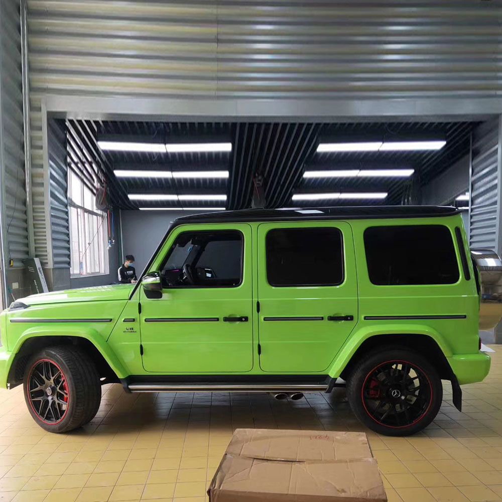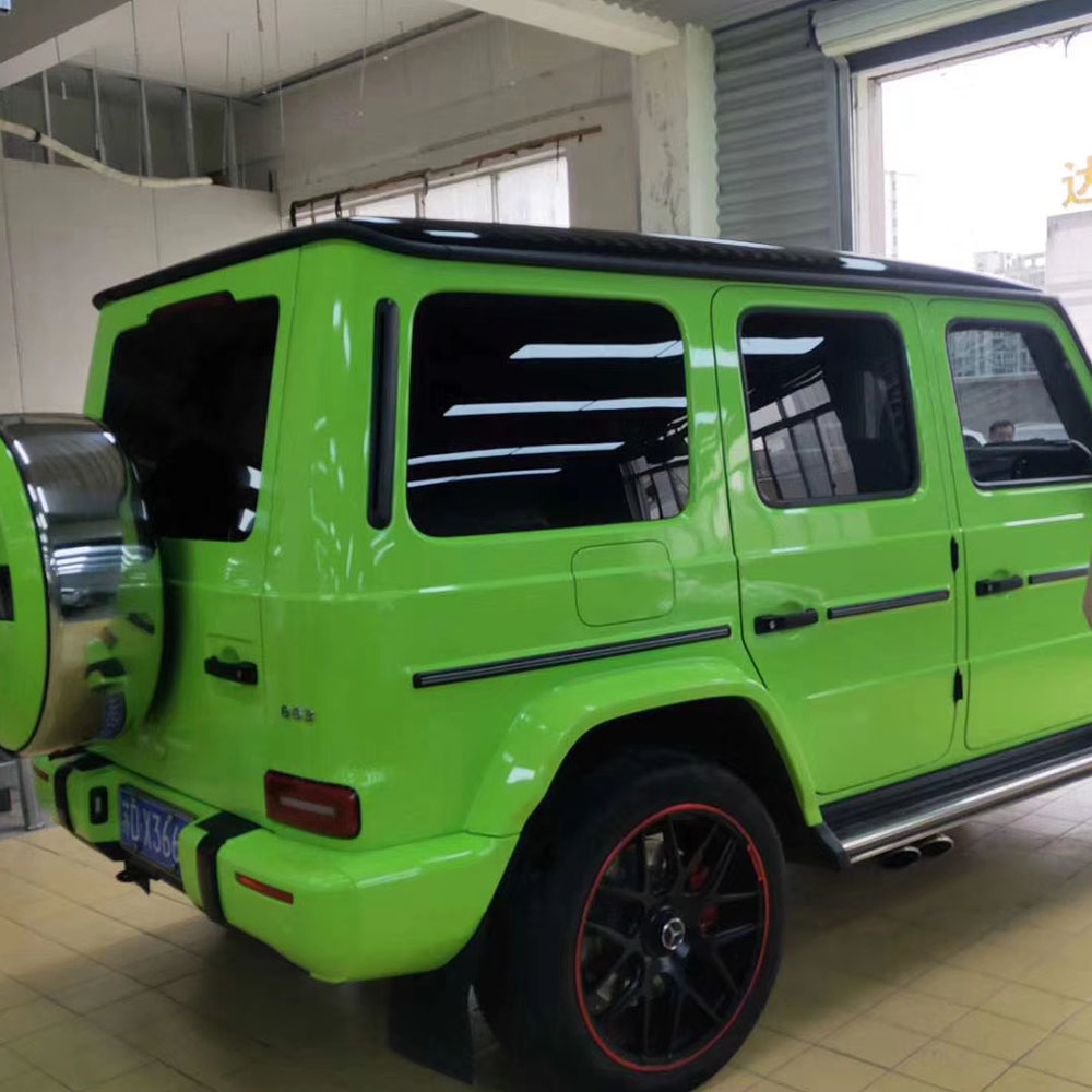 Pellicola vinilica verde mela ad alta lucentezza con splendidi riflessi per imitare le parti verniciate e poi verniciate in carrozzeria con le vernici più brillanti conosciute come “Tixotropiche”.