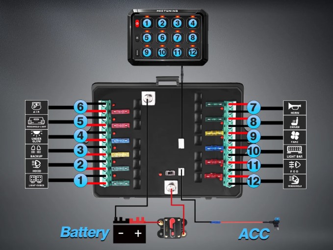 Porti un cavo + dall’interruttore e un cavo di terra dalla batteria o dal telaio.