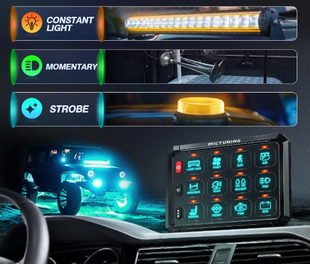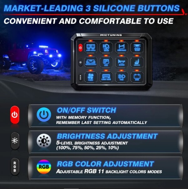 - Retroilluminazione a LED quando l’interruttore è attivato + LED di identificazione sul PDM