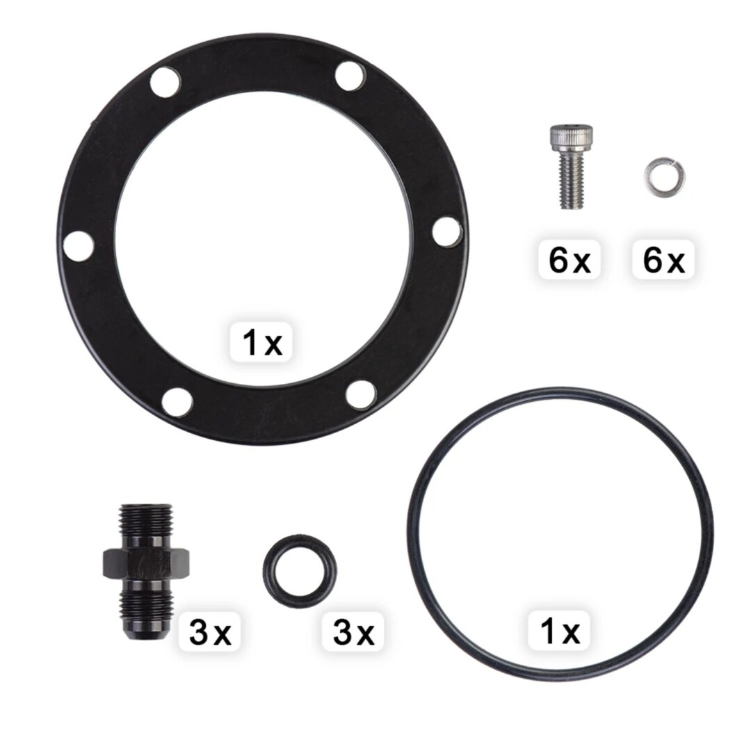 Insérez votre pompe à essence type 044 Bosch et AEM avec un diamètre extérieur de 60mm dans la bride spécialement prévue pour.