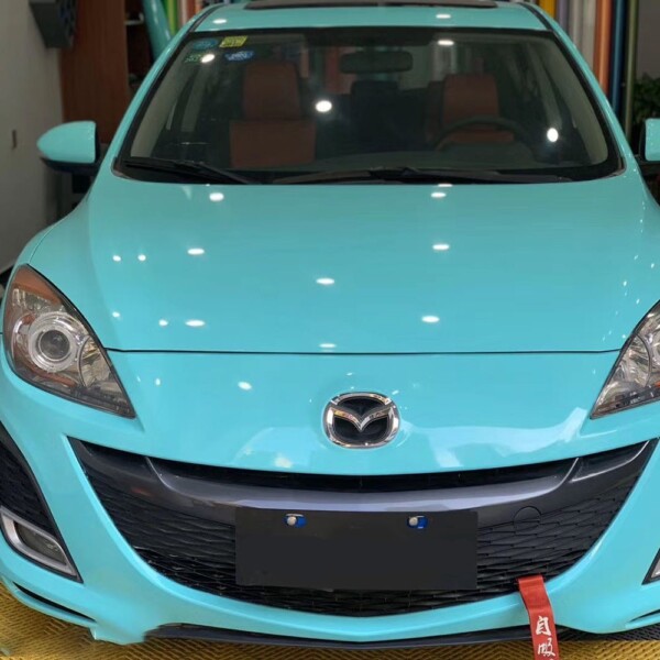 Film en Vinyle Bleu brillant aussi appelé « Tiffany » haute brillance avec de beaux reflets pour imiter le reflet des pièces peintes puis vernies en carrosserie avec les vernis les plus brillants dits « Thixotrope »