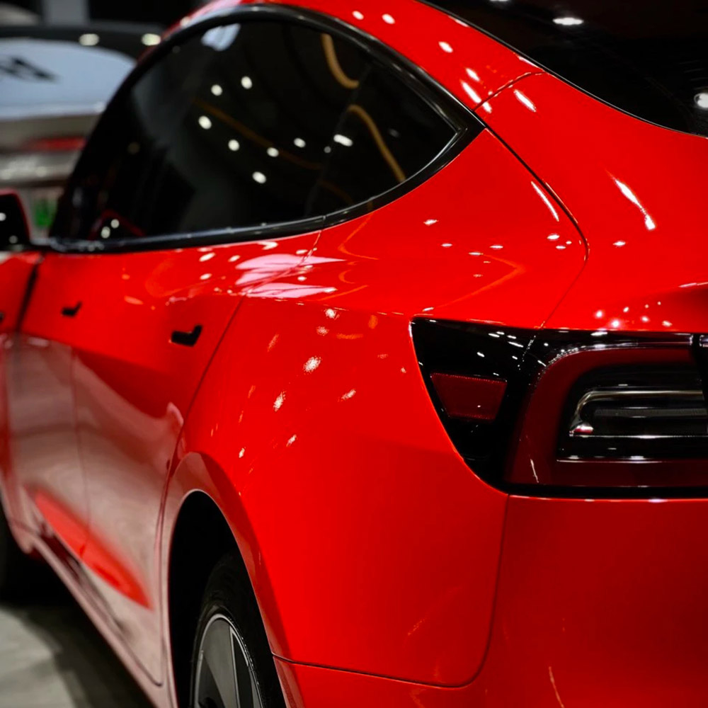 Film en Vinyle Rouge brillant aussi appelé « Ferrari » haute brillance avec de beaux reflets pour imiter le reflet des pièces peintes puis vernies en carrosserie avec les vernis les plus brillants dits « Thixotrope »