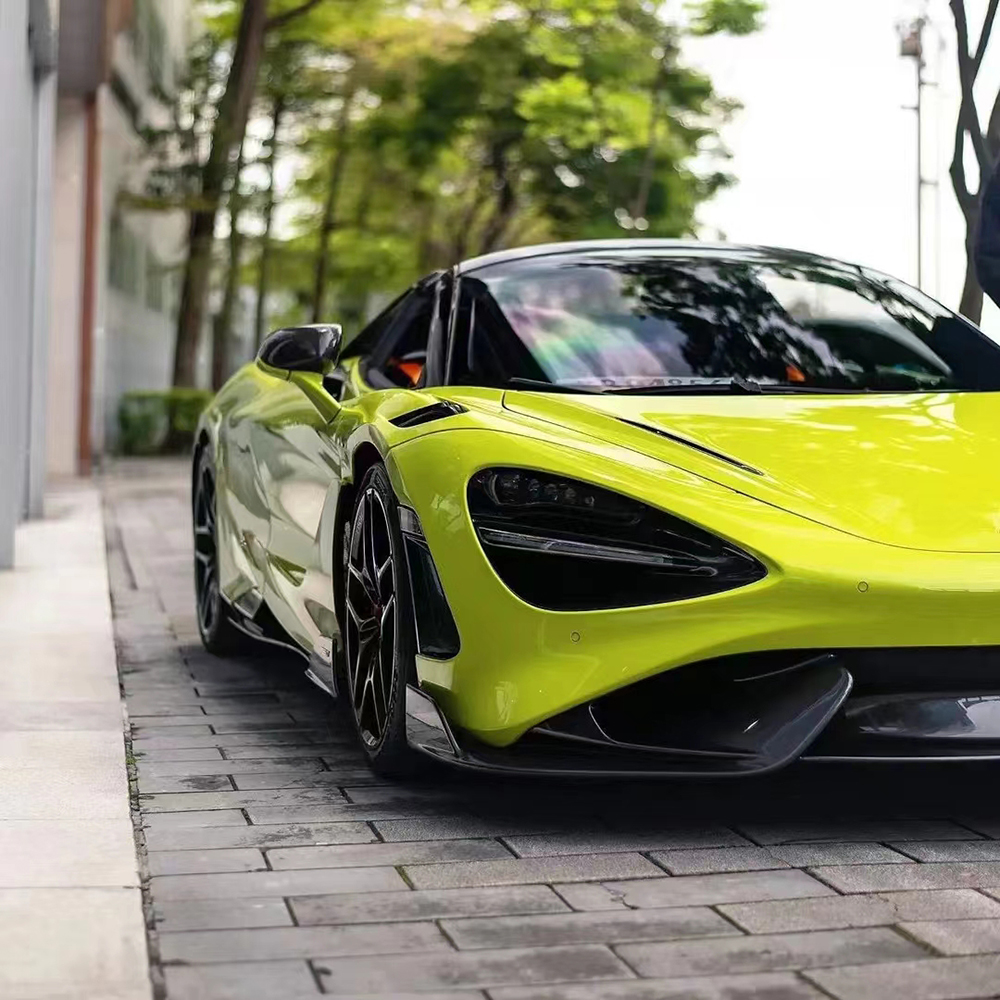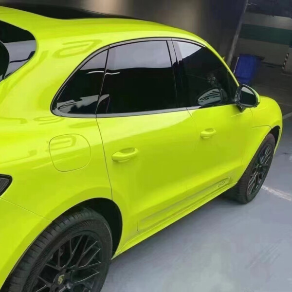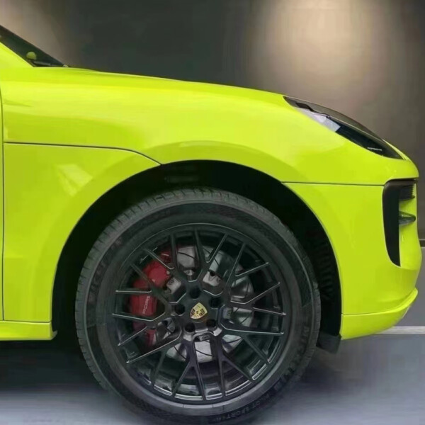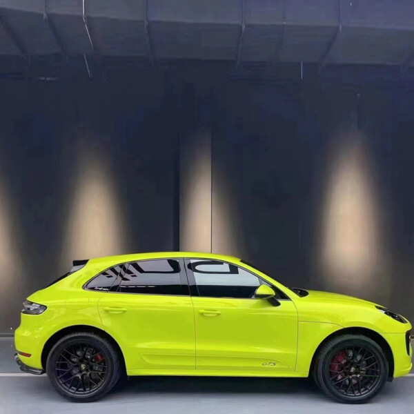 Film en Vert brillant aussi appelé « Vert Acide » haute brillance avec de beaux reflets pour imiter les pièces peintes puis vernies en carrosserie avec les vernis les plus brillants dits « Thixotrope »