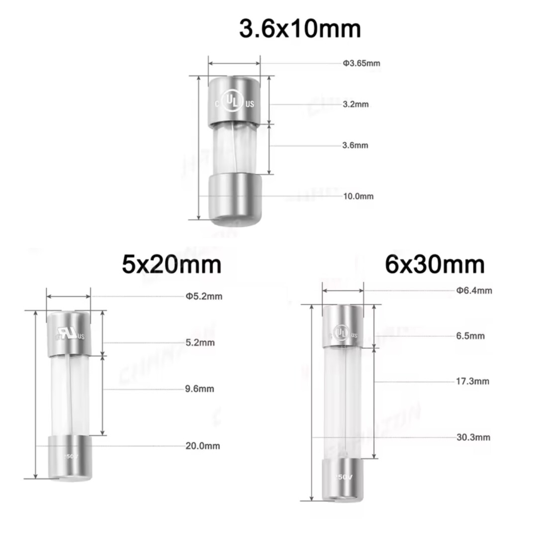 Kit de fusibles en verre 140 pièces 3.6x10mm, 5x20mm, 6x30mm, 0.5A à 15A