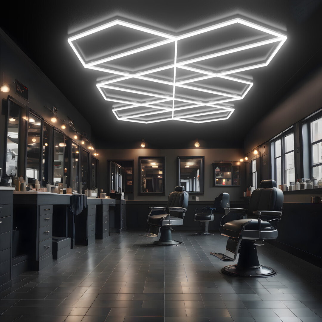 Ce luminaire en forme hexagonale style nid d’abeilles + triangles, dispose un éclairage puissant pour votre atelier, salon de coiffure et salle de sport.