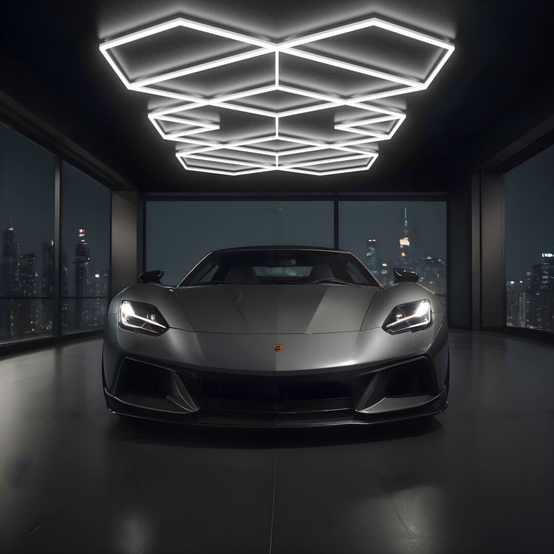 Ce luminaire en forme hexagonale style nid d’abeilles + triangles, dispose un éclairage puissant pour votre atelier, salon de coiffure et salle de sport.